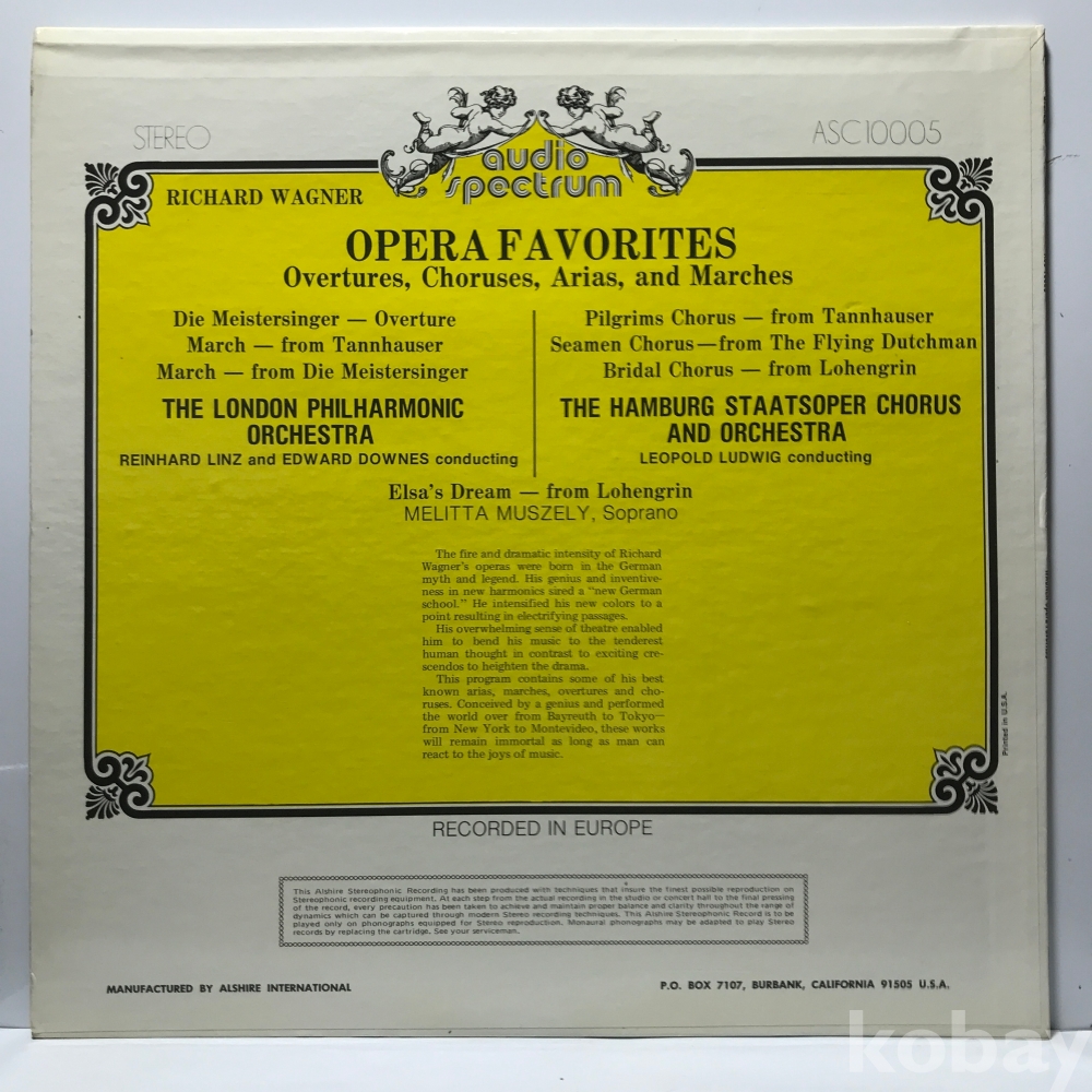 LP 30,940-224 Wagner - Opera Favorites . 자켓 EX+ 알판 EX+ 년 수입반
