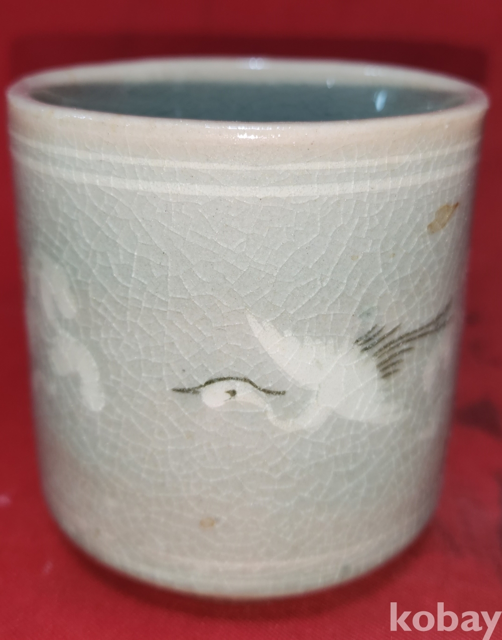 1세대 유명 도예가 도암 지순탁 (池順鐸, 1912년 4월 30일 ~ 1993년 9월 22일) 作 청자 구름과 학(雲鶴)문양 잔입니다,