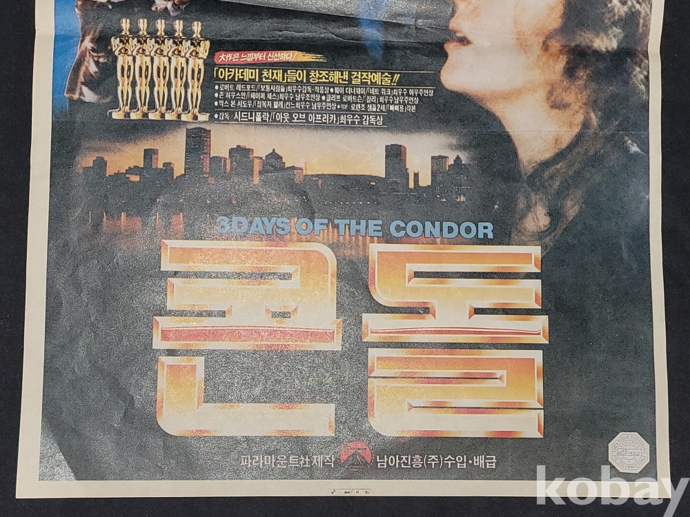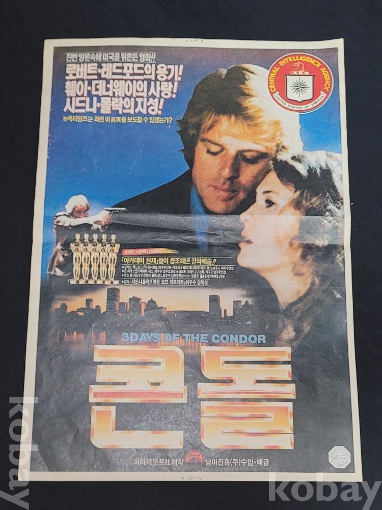 빈티지 세월 감이 느껴지는 1975년 작 영화 콘돌 (Three Days of the Condor) 오리지날 영화 포스터입니다.