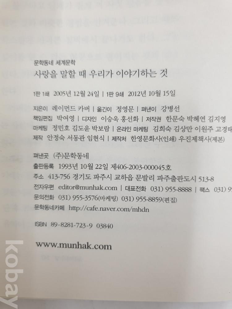 레이먼드 커버, 문학동네, 2012