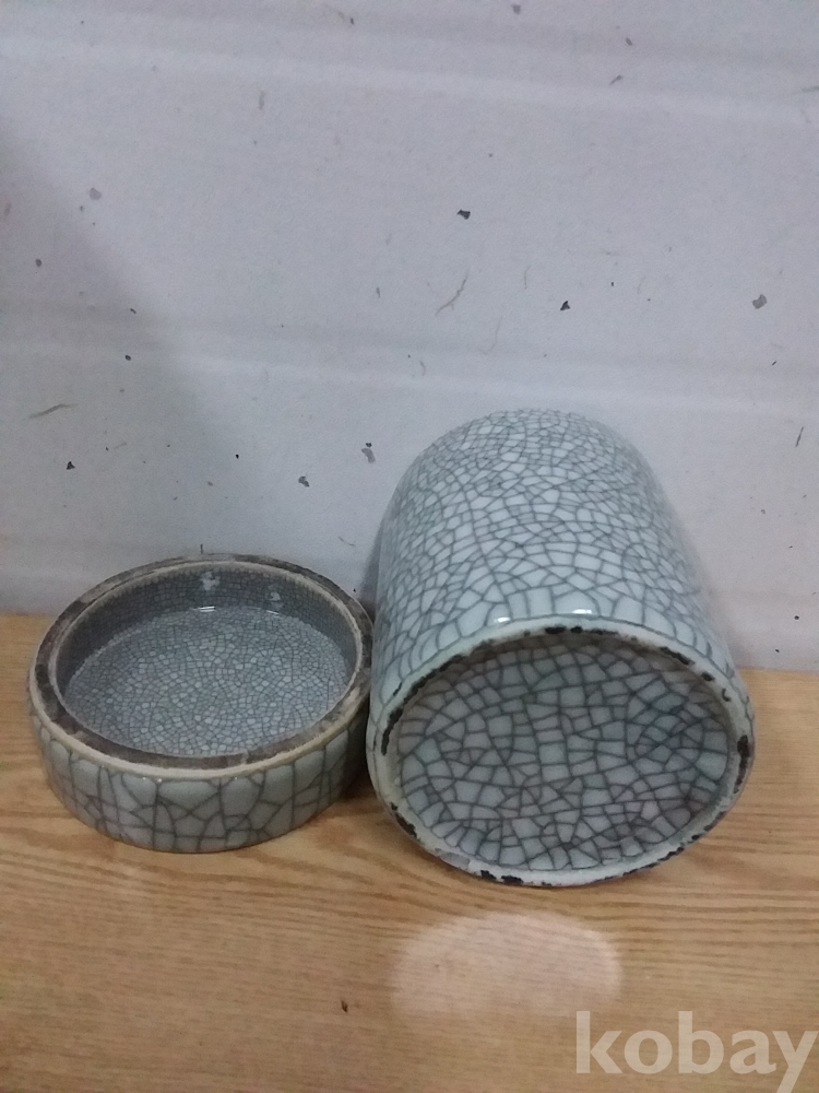 도안이 전체적으로 꽊찬 도자기 벼루겸 필통입니다