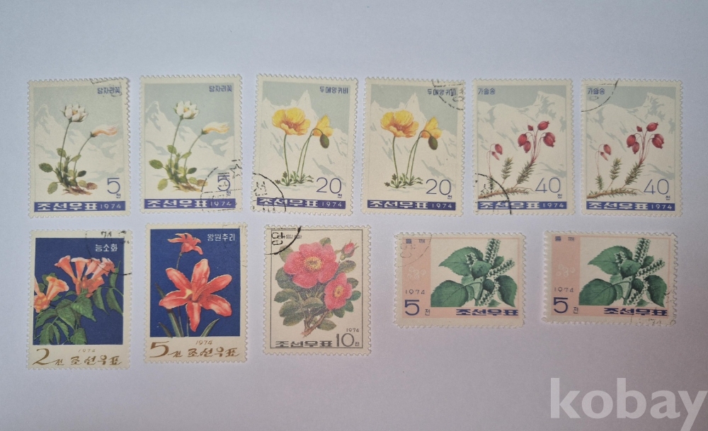 1974년 발행된 조선우표 꽃 시리즈 세트입니다.