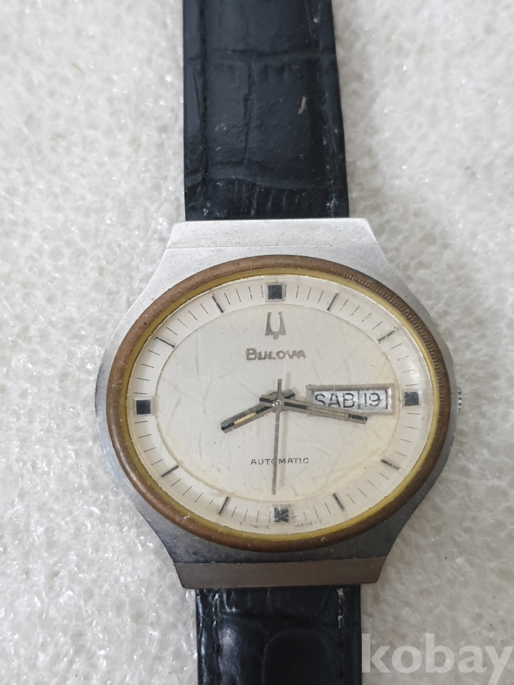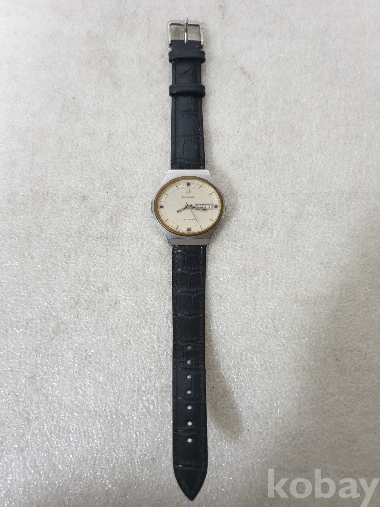 {천원경매} Y-1.1187 블로바 검정가죽 손목시계 (줄 낡음, 정품확인불가)