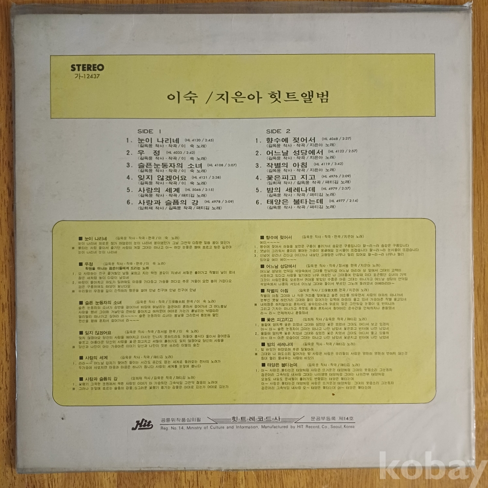 | 자켓상태 | EX : 약간의 마모, 모서리 찢김 존재 | 음반상태 | EX : 재생에 영향 없는 가벼운 기스 존재 | 발매정보 | 초반 | 가사지여부 | 무 |