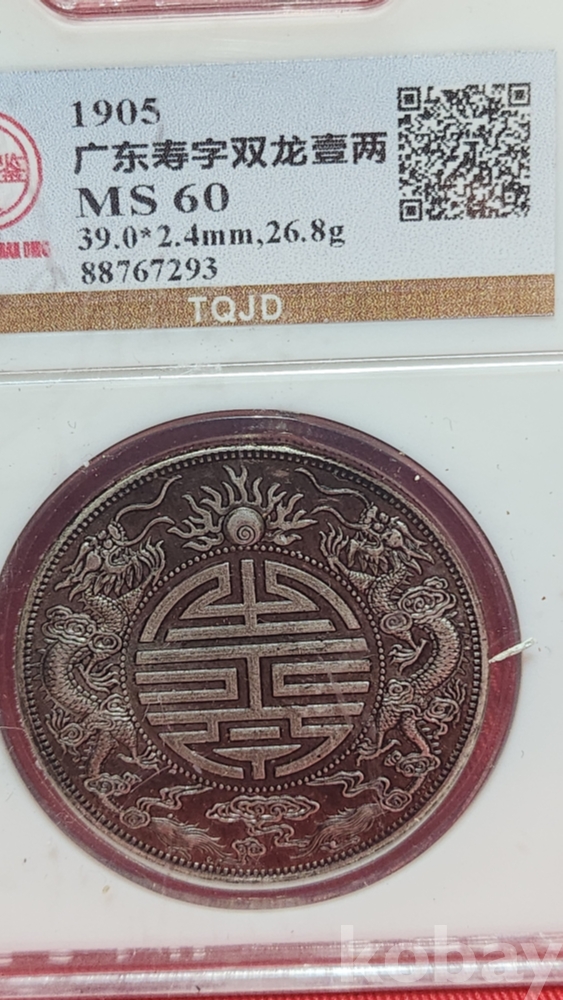 1905년 큐알코드(QR CODE)가 함께하는 은색 광서 원보 기념 밀봉된 상태입니다,