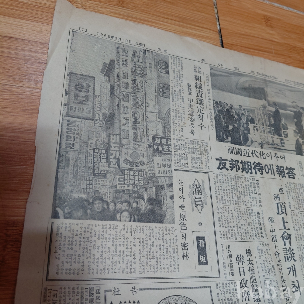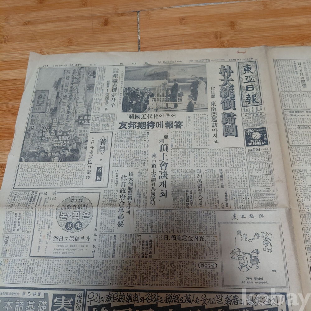 박정희대통령 동남아 순방 마치고귀국 정치면 메인기사 서울시가지 장면등.동아 66년2월19일 올려드립니다