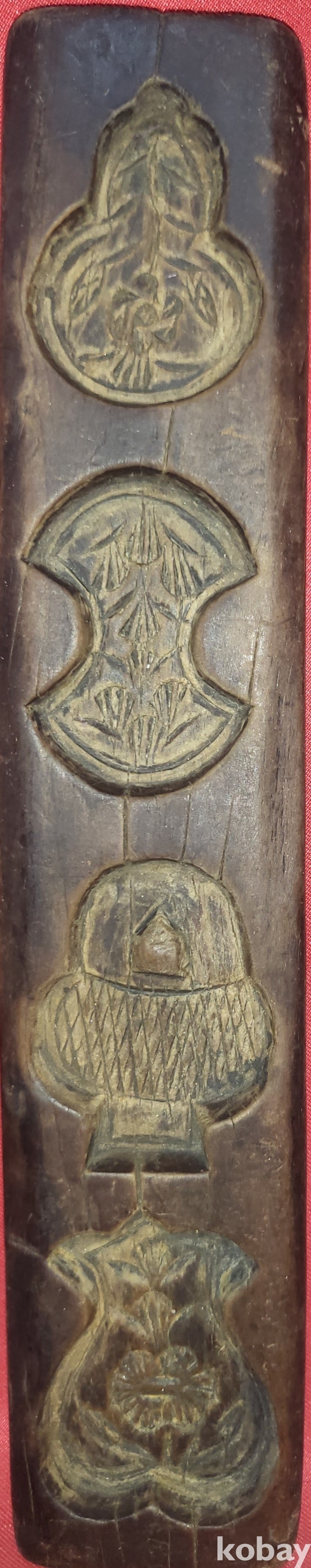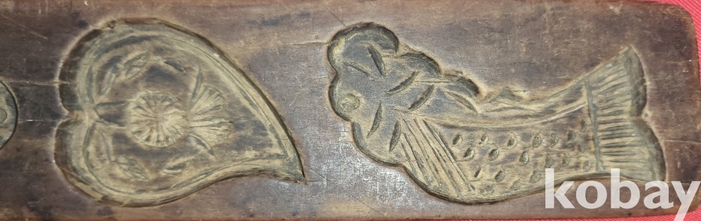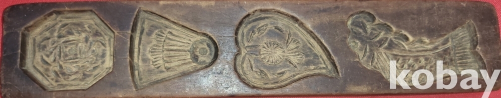 구한말 연대 나무로 만든 물고기 꽃 문양 8공 양면 다식판입니다,