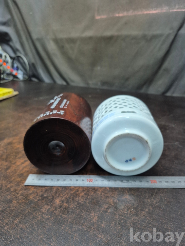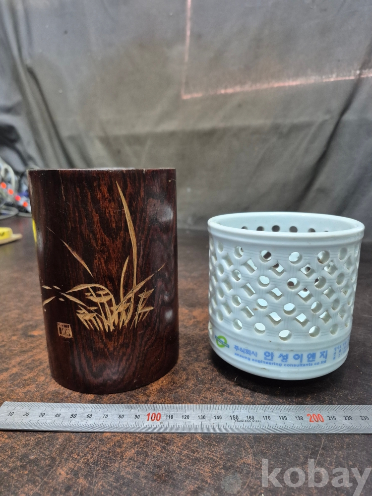 2001년 전라북도 중앙공연문화재단 준공및 개관 기념 한국 소리 문화의 전당 고목필통1점 안성 이엔지 도자기 필틍 2점 일괄 10.5*10.5*15