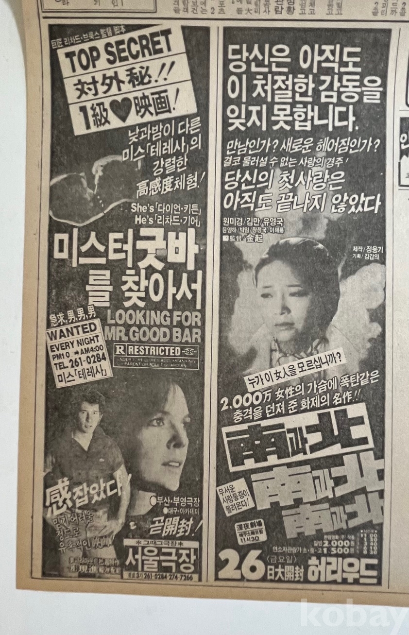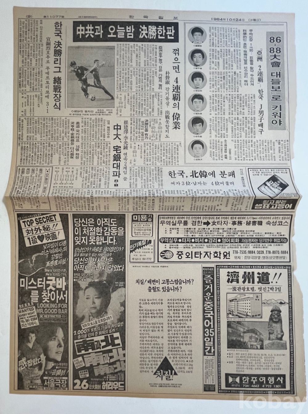 1984년 신문광고가 실린 한국일보 낱장입니다.