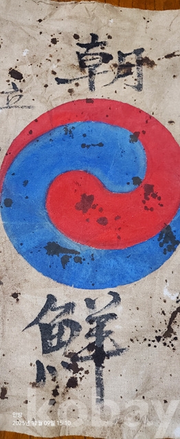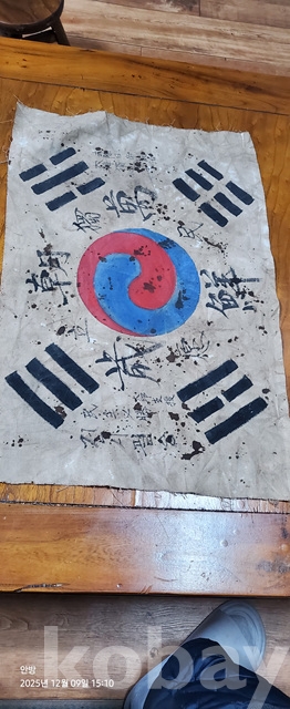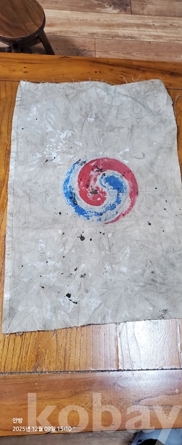 라-122.오래된 광목에 그려진 태극기