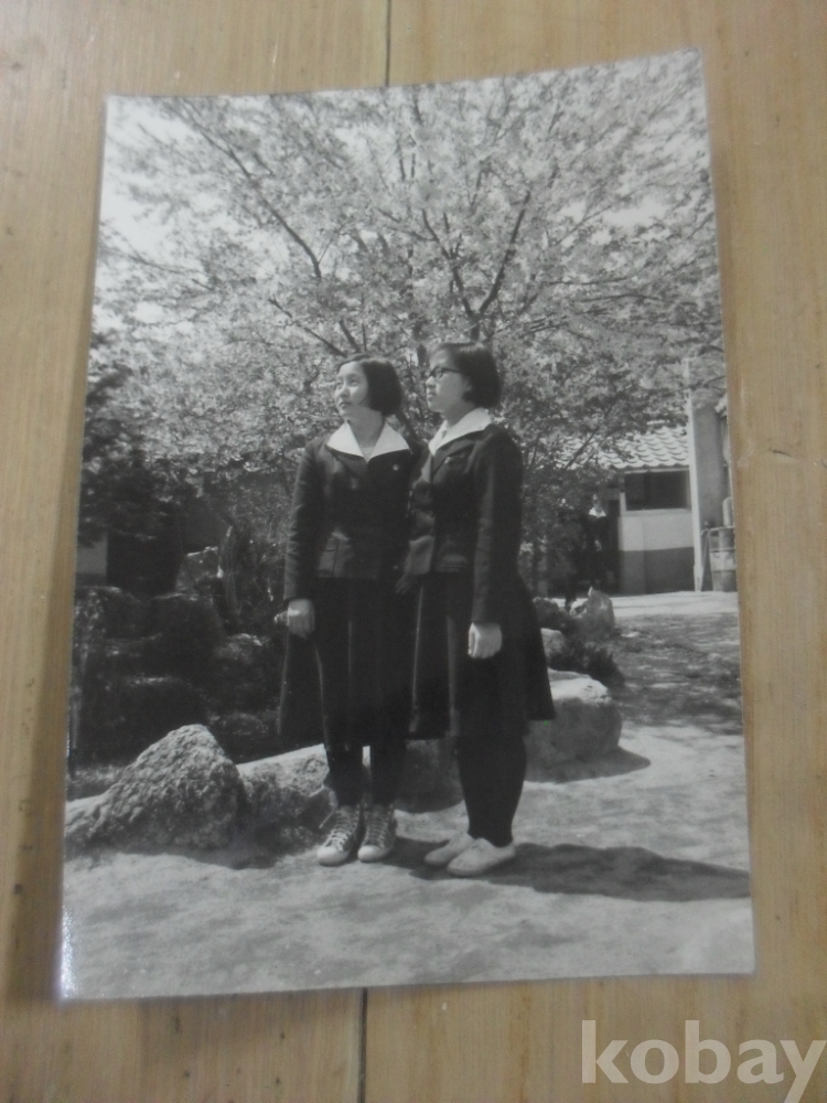 1262h)70년대 벚꽃나무 앞에서 여학생들 사진.