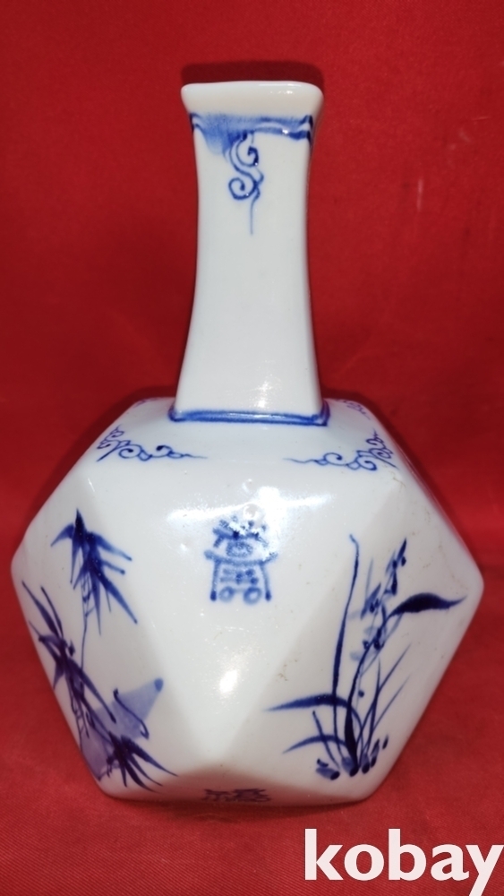 군당(君黨)도예 청화백자 사군자 문자문양 12면 병입니다,