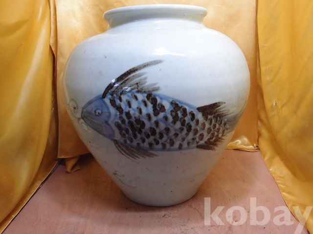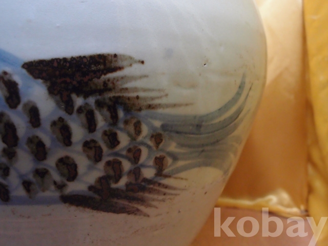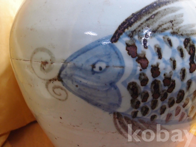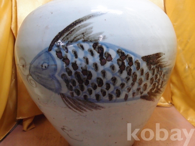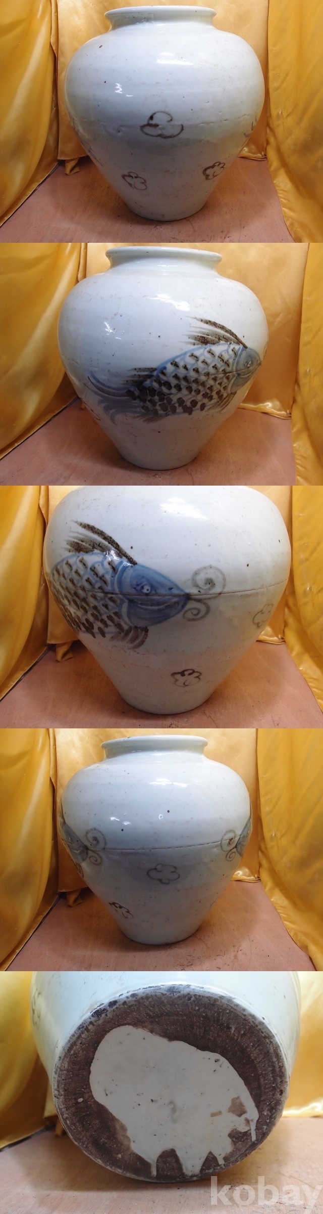 가-39.오래된 대형 쌍물고기문양이있는철사청화 백자