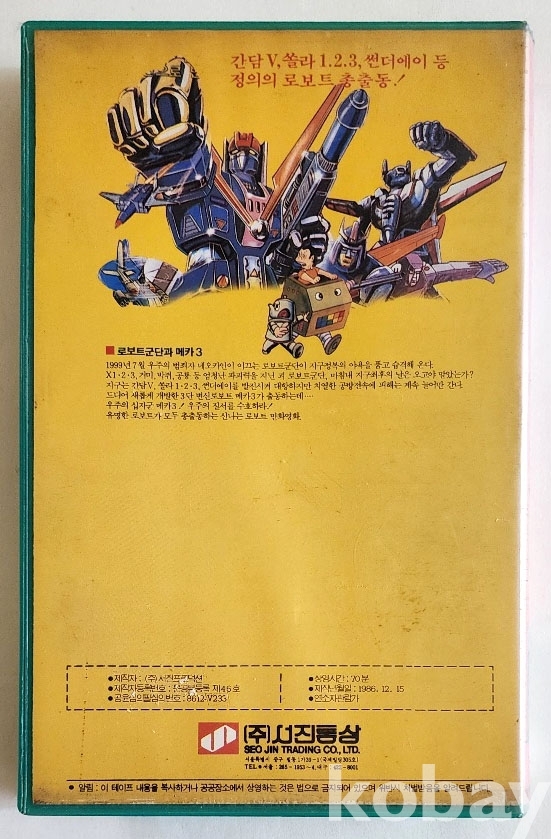 물 품 명 | 로보트군단과 메카3/ 만화영화 / (주)서진통상 / 1986년 |