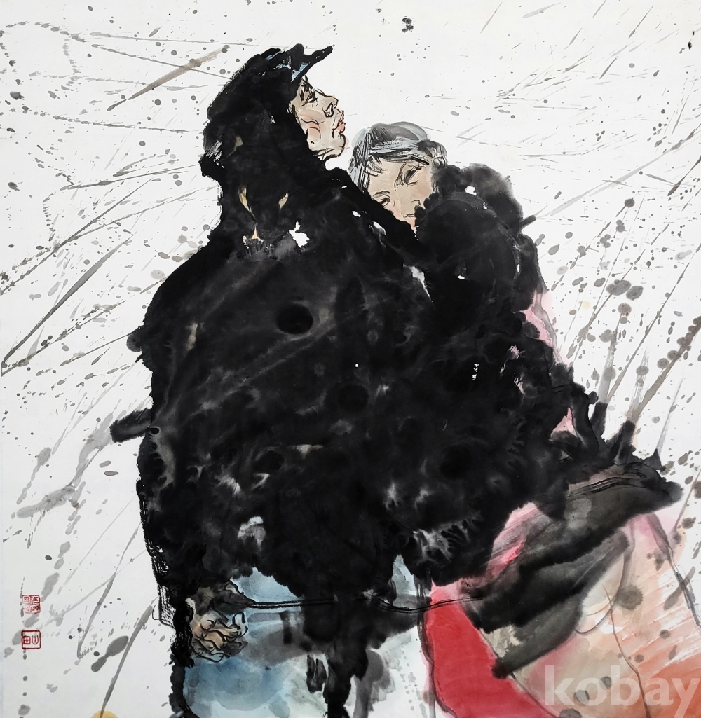 산전 윤일호 [山田 尹日湖] 수묵화[水墨畵] 노부부[老夫婦]