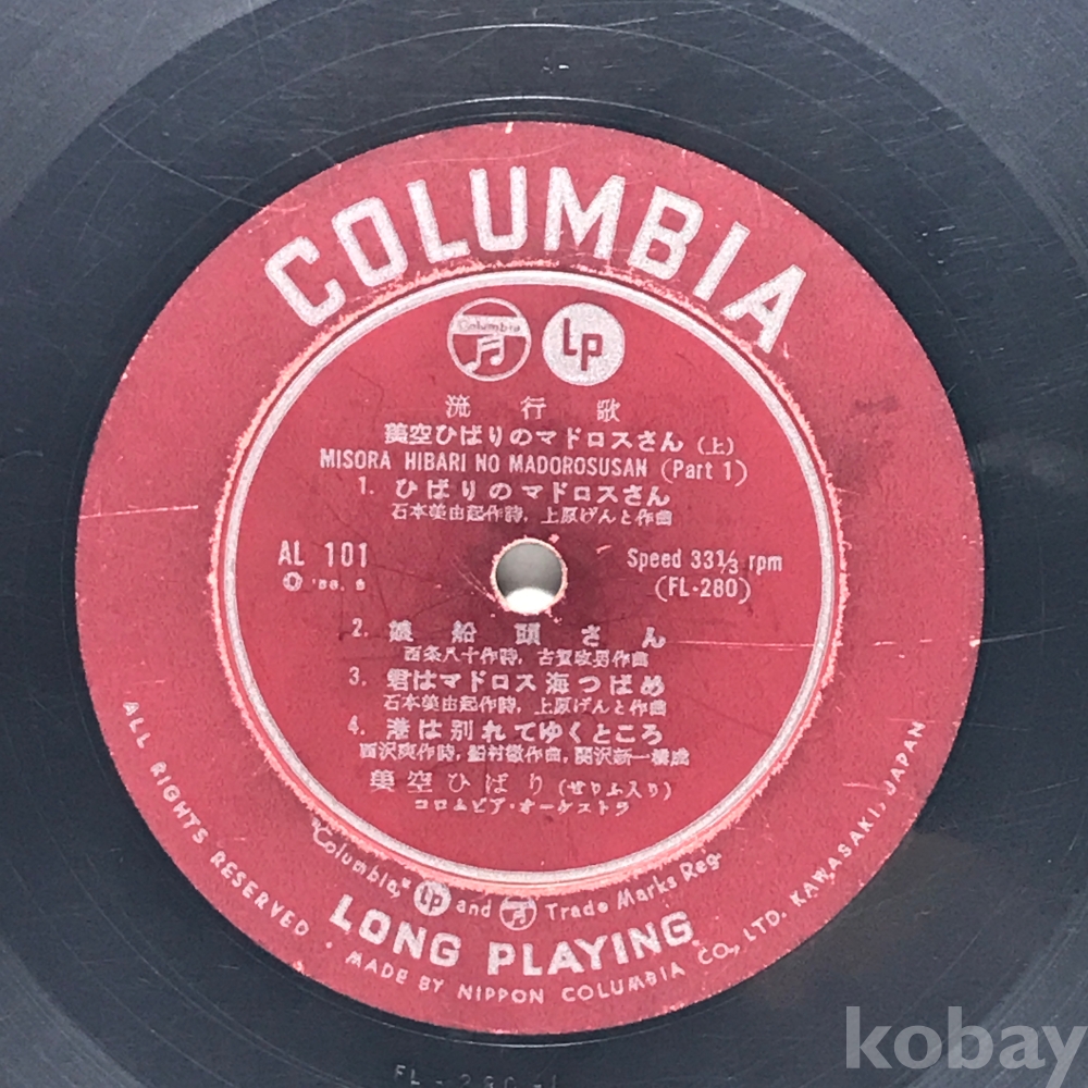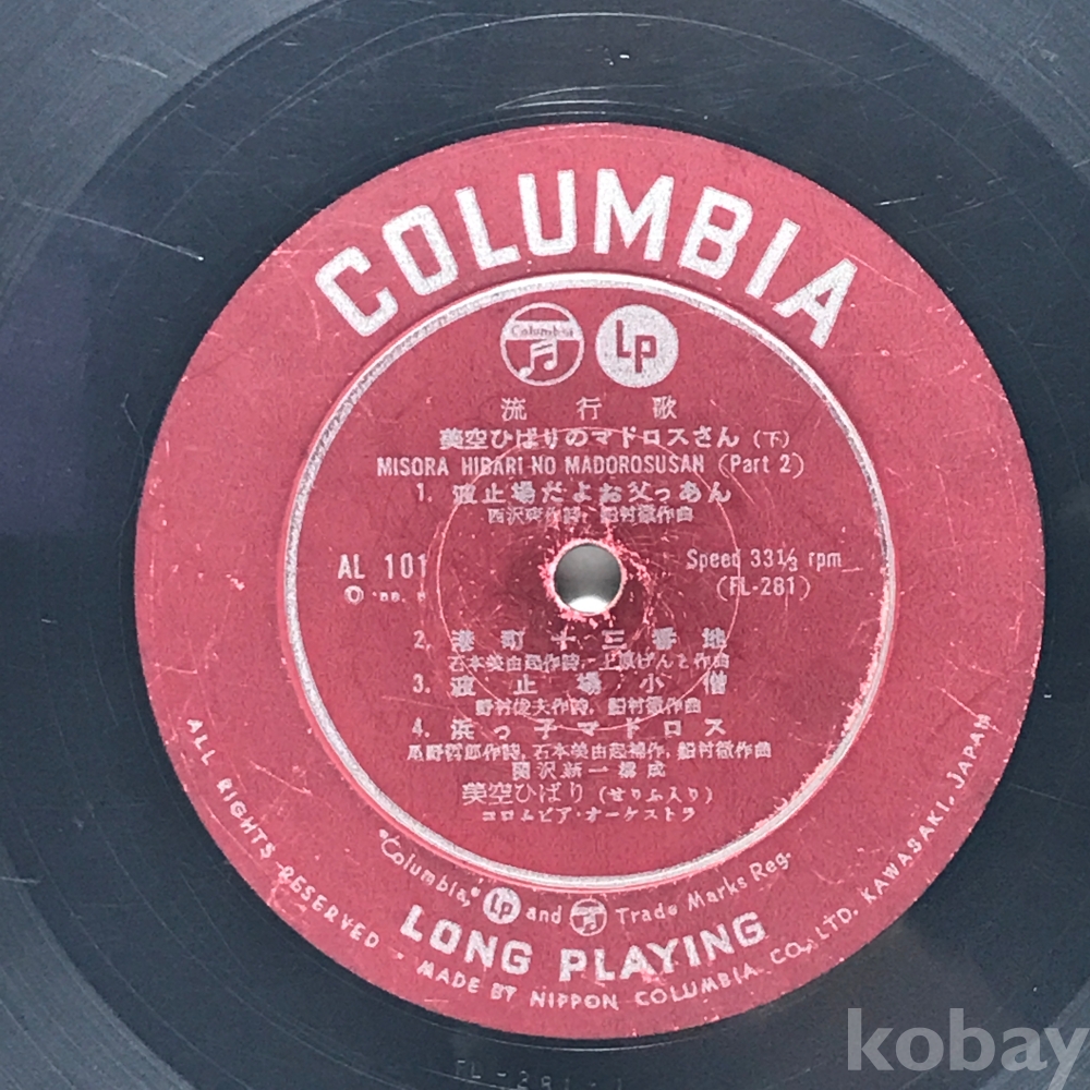 10인치 LP 83,623-255 MISORA HIBARI NO MADOROSUSAN . 자켓 無 알판 VG 수입반