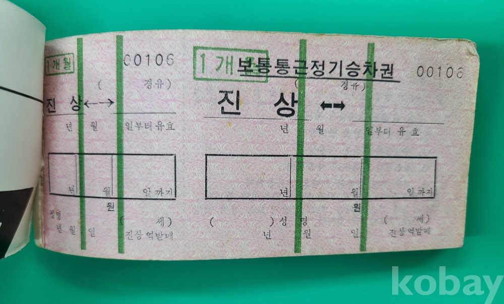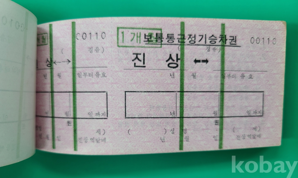 1980-90년대 광양 열차승차권 (1개월 보통통근 정기승차권). 94매 한 묶음 진상 ↔