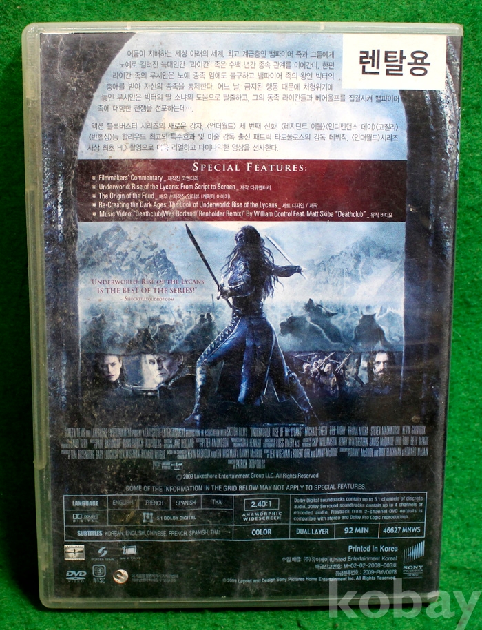 (DVD) 언더월드 : 라이칸의 반란 - 마이클 쉰 / 로나 미트라...주연