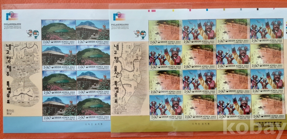 내고향 특별 우표(제주,울산) 16매 전지 2종 입니다.