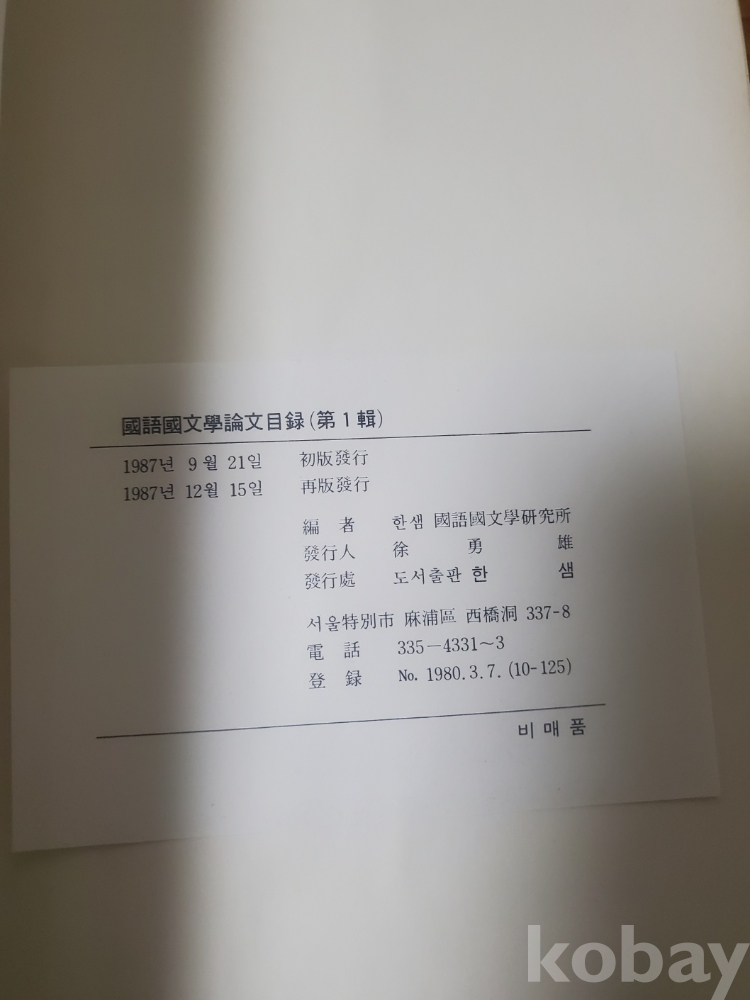 1. 국어국문학논문목록 제1집, 한샘국어국문학연구소, 1987년, 189쪽, 비매품, 상태 상, 사진 참조