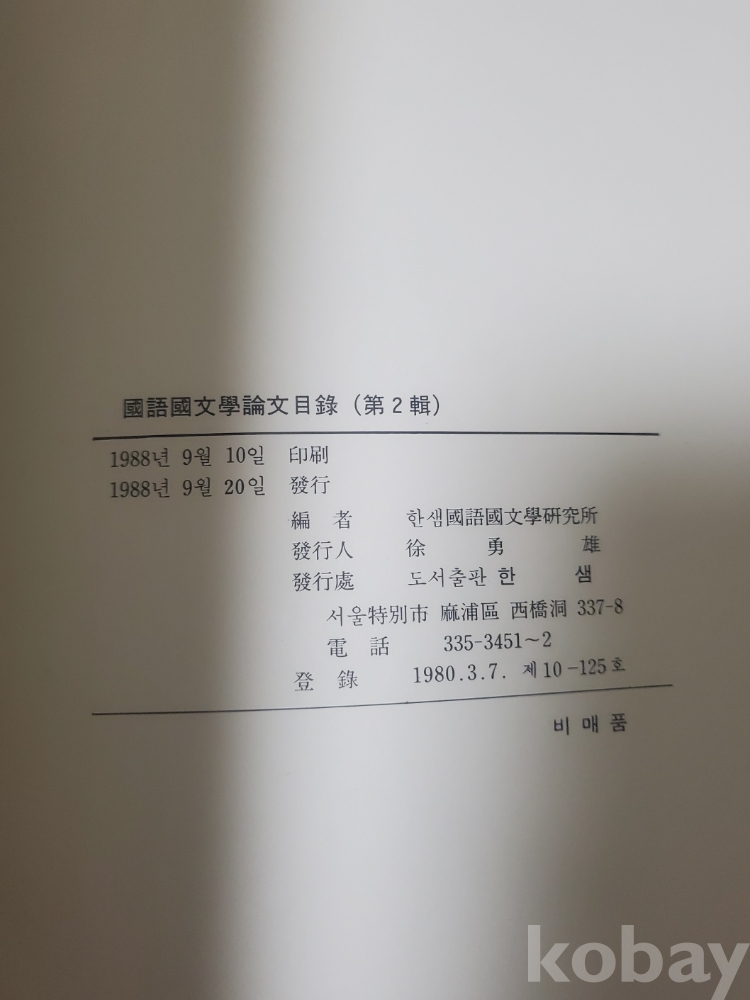 2. 국어국문학논문목록 제2집, 한샘국어국문학연구소, 1988년, 218쪽, 비매품, 상태 상, 사진 참조