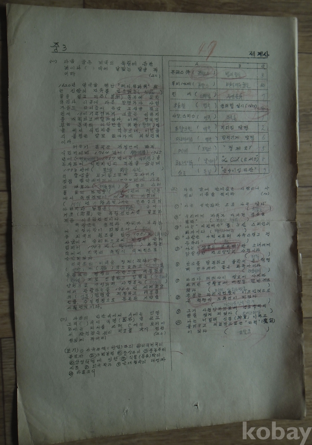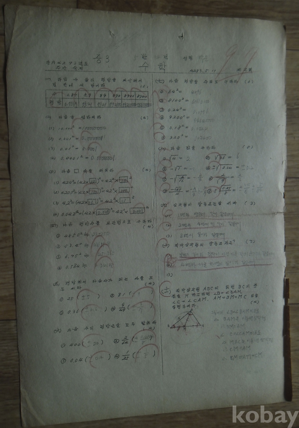1960년 중학교 3학년 시험지 수학/세게사