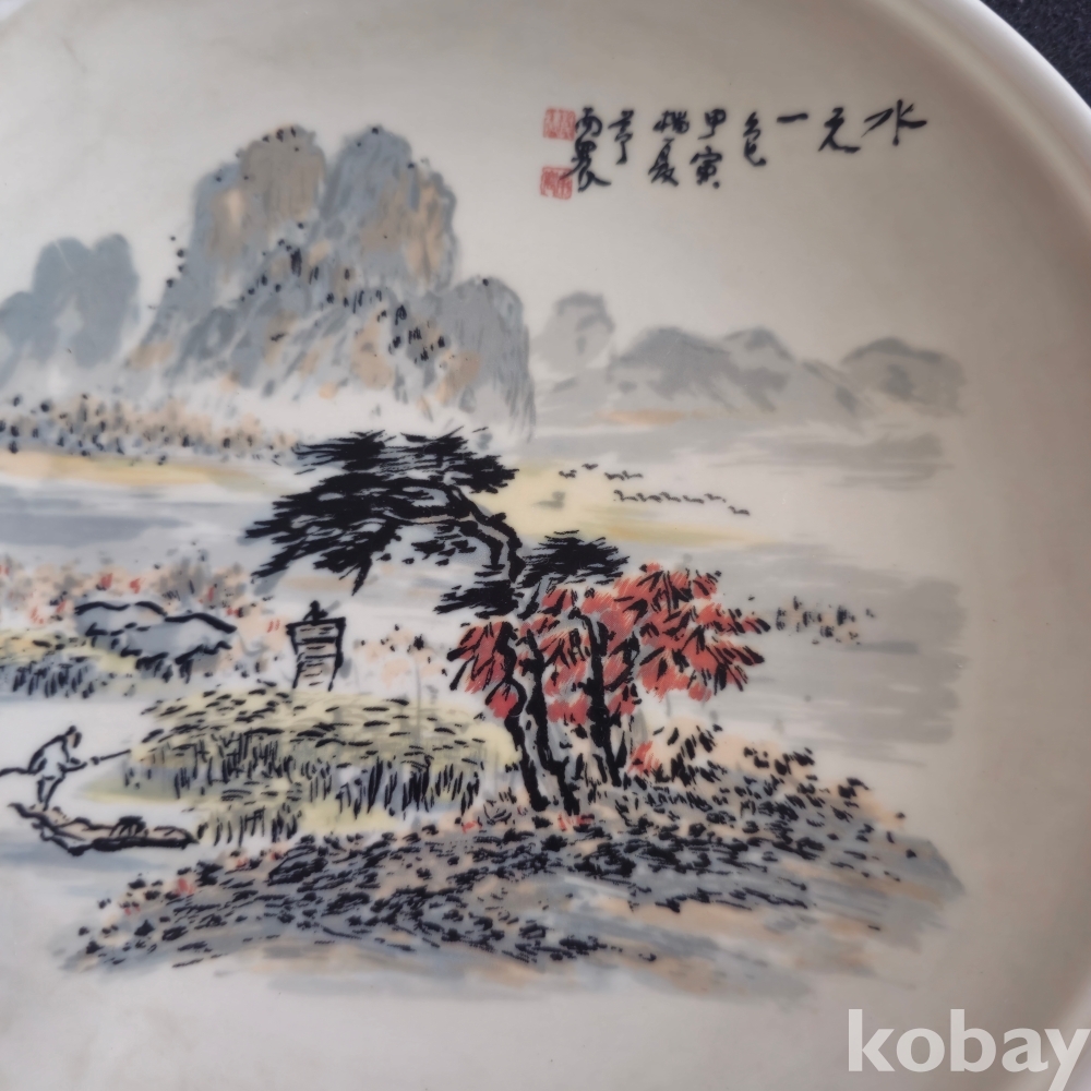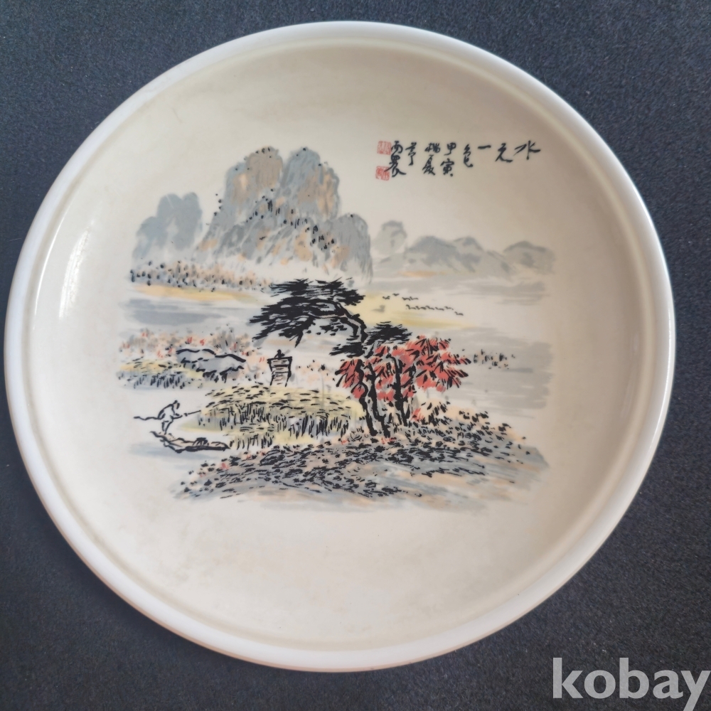 (((근현대사자료/도자기접시))) 오래전 남농(南農) 화백 산수화 도자기 접시 (행남사)