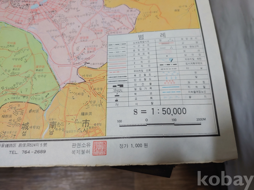 조금 찢어진 부분과 접은부분의 3곳에 작은 구멍이 있으나 상태 깨끗함