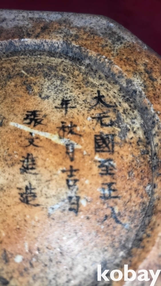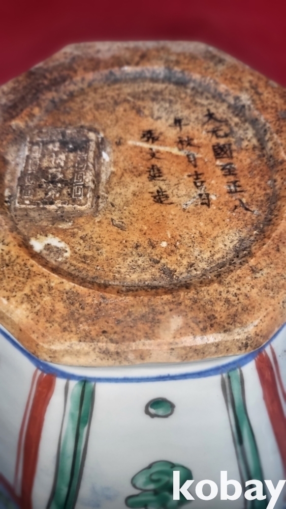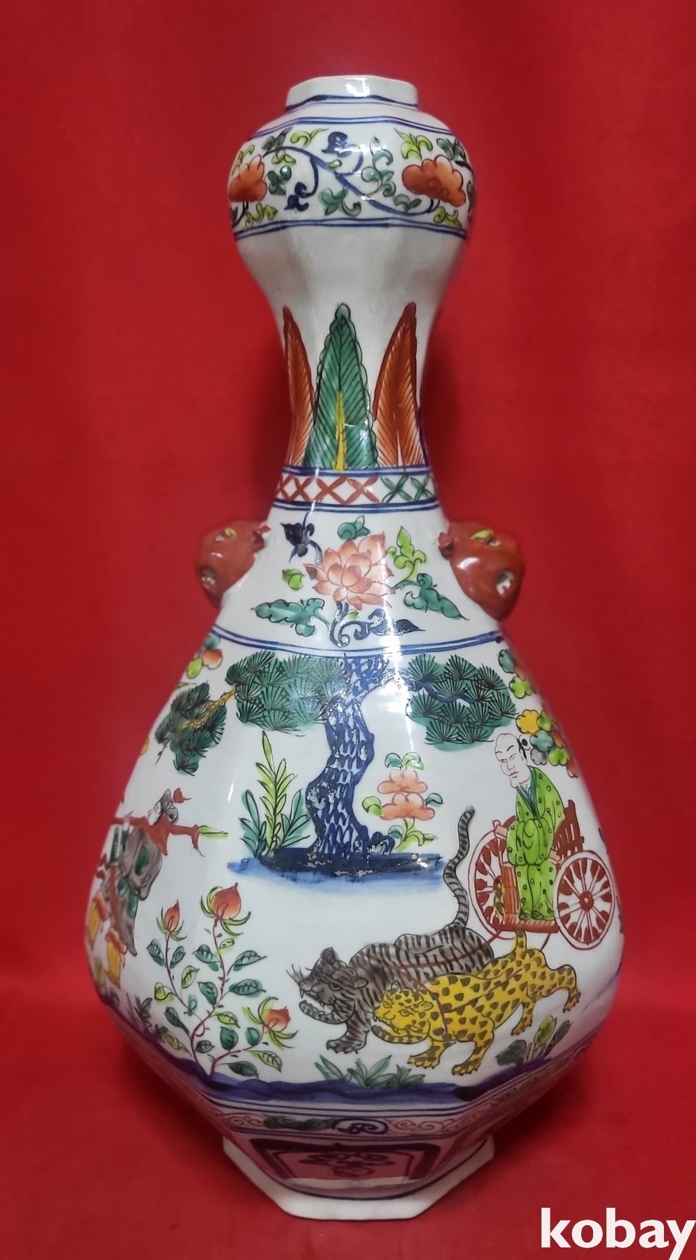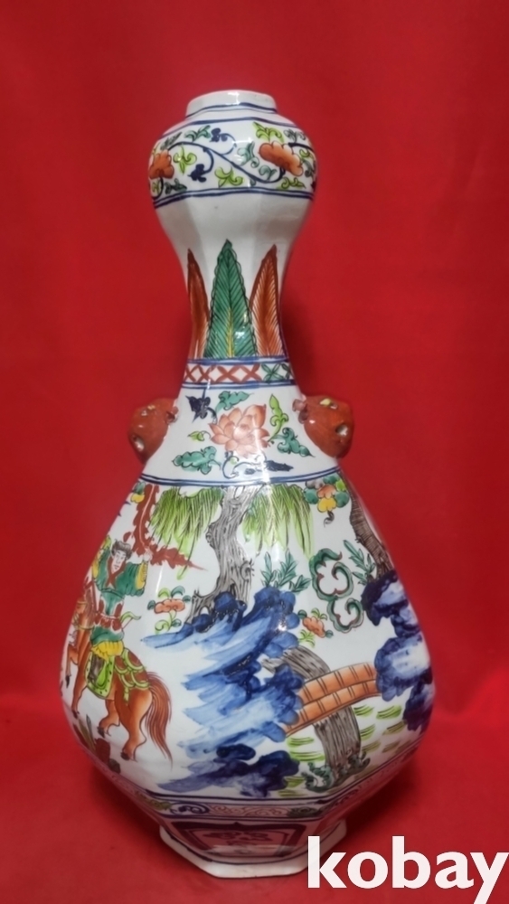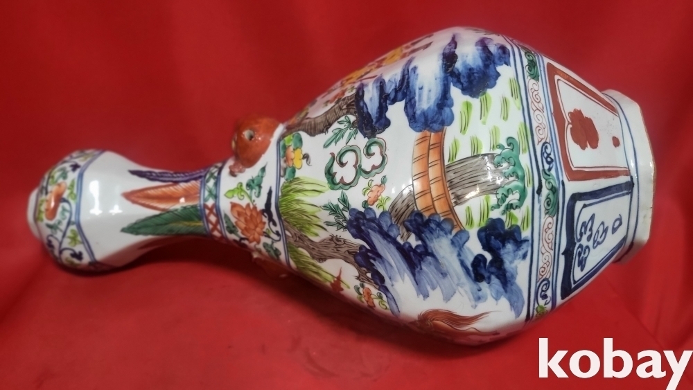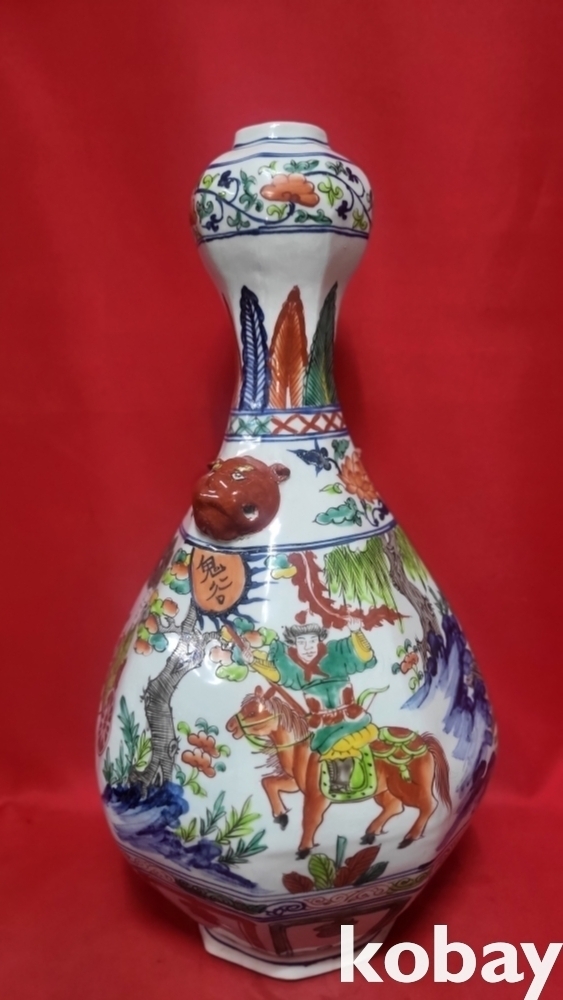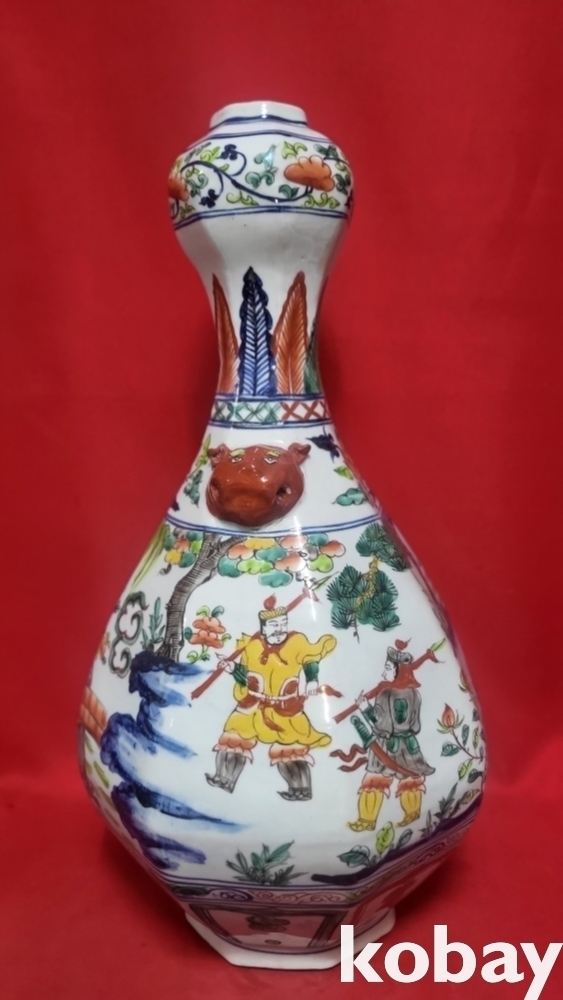 대원국지정8년 추월길일 장문진 조(張文進 造) 관지 오채 귀곡자하산도문양 양이(兩耳) 8각 천구병입니다,