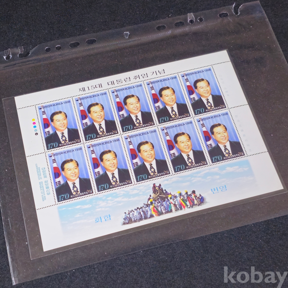 (천원경매) (((대통령자료/우표/쉬트))) 1998년 제15대 김대중 대통령 취임기념 우표전지 (미사용)