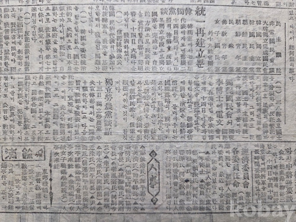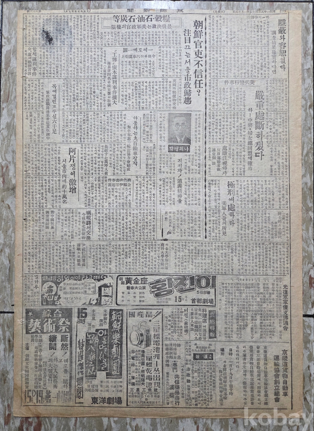 해방공간 경향신문(1947년 1월15일)