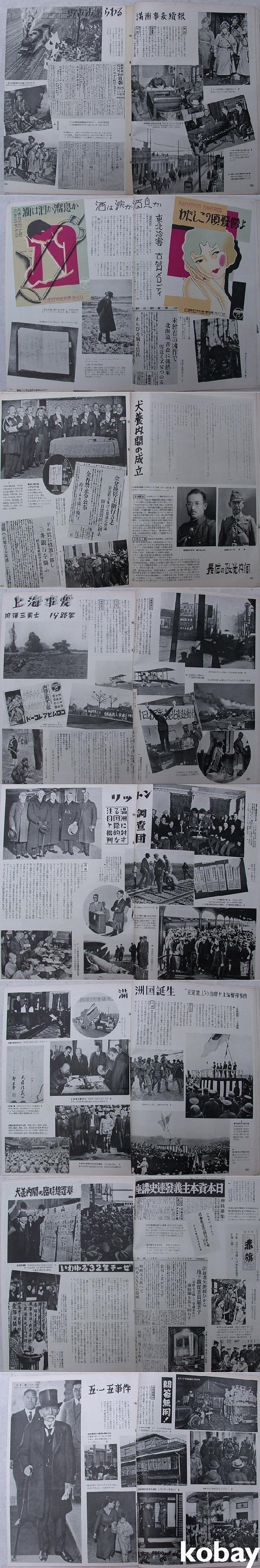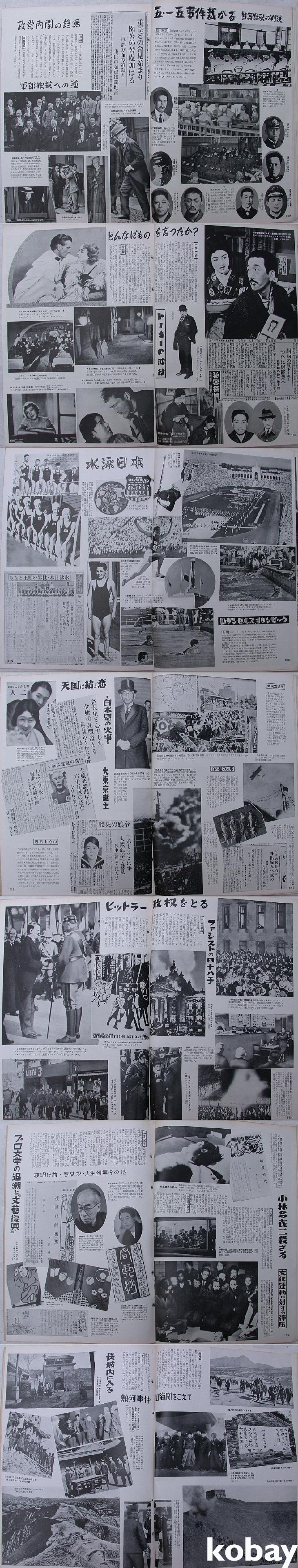 이어서 일본 내각의 변화와 서민들이 보았던 <淺草紅團> 관련 화보가 있다. 1931년 만보산 사건과 관련한 한국내 7월 5일 평양시가의 군중사진도 보인다. 이어서 만주사변이 일어나다, 만주사변 당시의 화보와 마적들의 사진도 실었다. 이어 前進座의 '歌舞伎王國', 상해사변과 국제적 관심, 혈맹단사건, 만주국의 탄생, <적기>지 등 일본 공산당의 활동, 5.15사건, 정당내각의 종언과 군부독재로의 길, 토키영화의 파문, 일본의 수영선수, 우경화와 熱海사건 일망타진, 1933년 히틀러의 정권장악, 문화운동 탄압과 프로문학의 퇴조, 열하사건, 여학생들의 자살사건, 三陸大津波, 공황을 타개하는 프랭클린 루즈벨트, 일본의 국제연맹 탈퇴, 국가주의/일본주의/국수회 등 비상시의 일본모습, 1932년 일본공업제품의 소셜 덤핑, 레뷰광시대/일본극장, 銀座八丁, 군복이 말해주는 시대, 군국주의 정책, 朝日/每日의 두 거두가 죽다, 황태자의 탄생 등과 같은 제목들이 보인다.