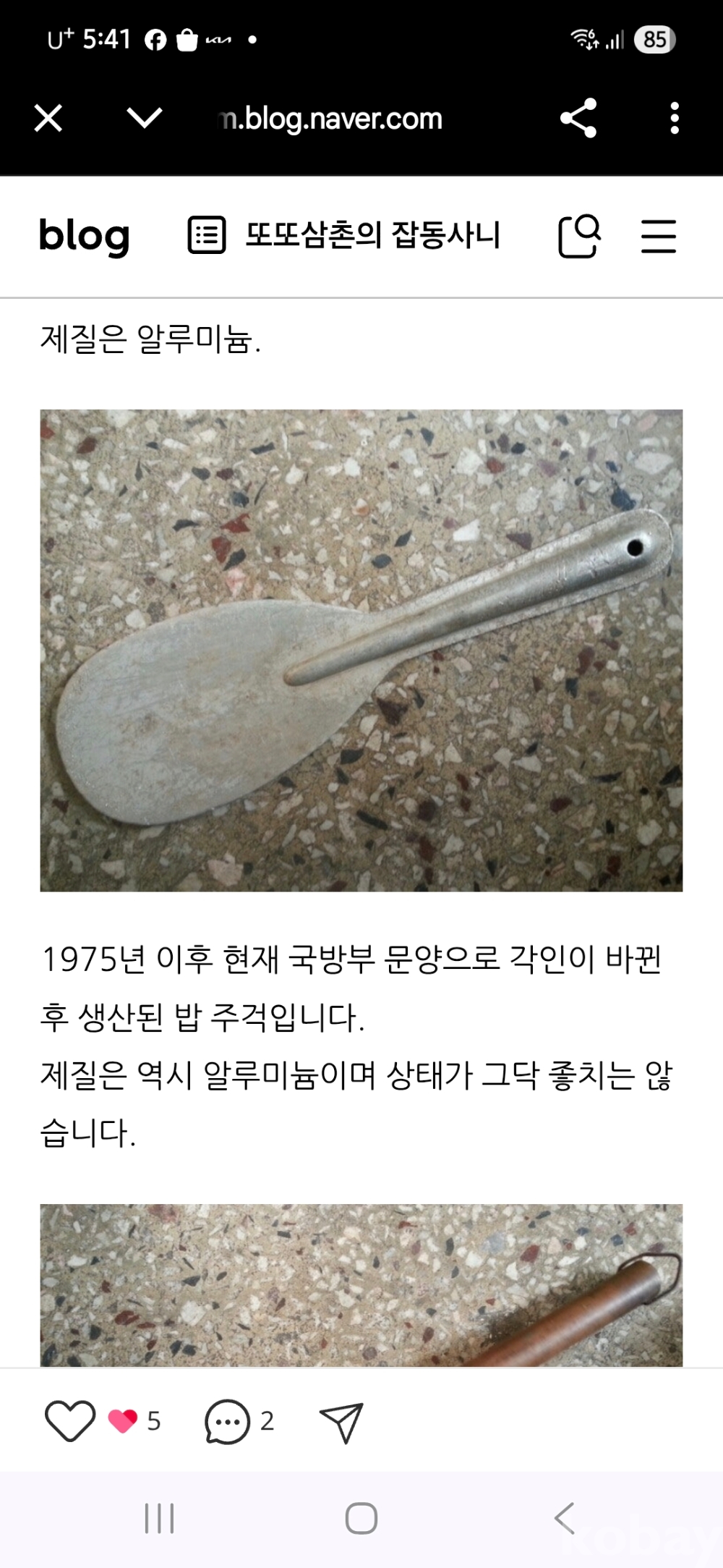 1960년대 군용 밥주걱 재질 알루미늄 각인은 ANSA 10*32*2