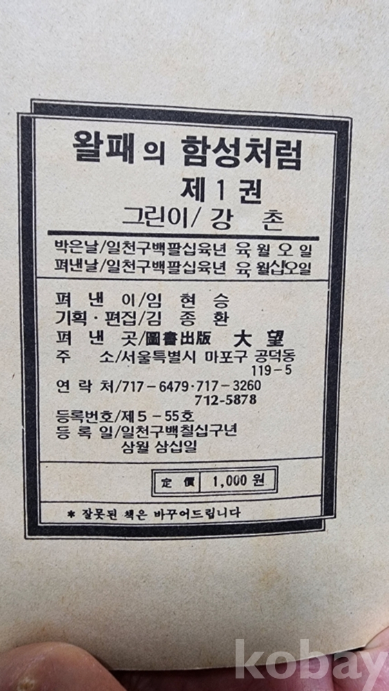 왈패의 함성처럼 1~6 완결, 강촌 그림, 1986년