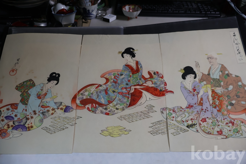 original woodblock print by chikanobu 아름다운 목판화 3 세트 임니다 일본 요수 치카노부의 대표작 임니다 세월의 흔적을 가진 명작 임니다 사진 참조 하세요 Chikanobu Yoshu (1838-1912)