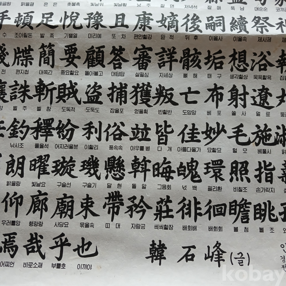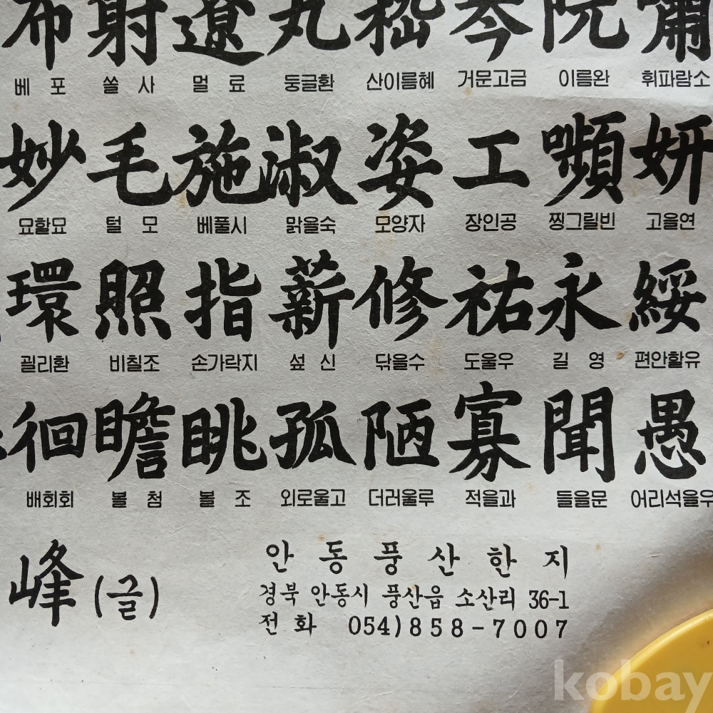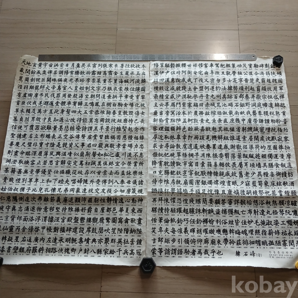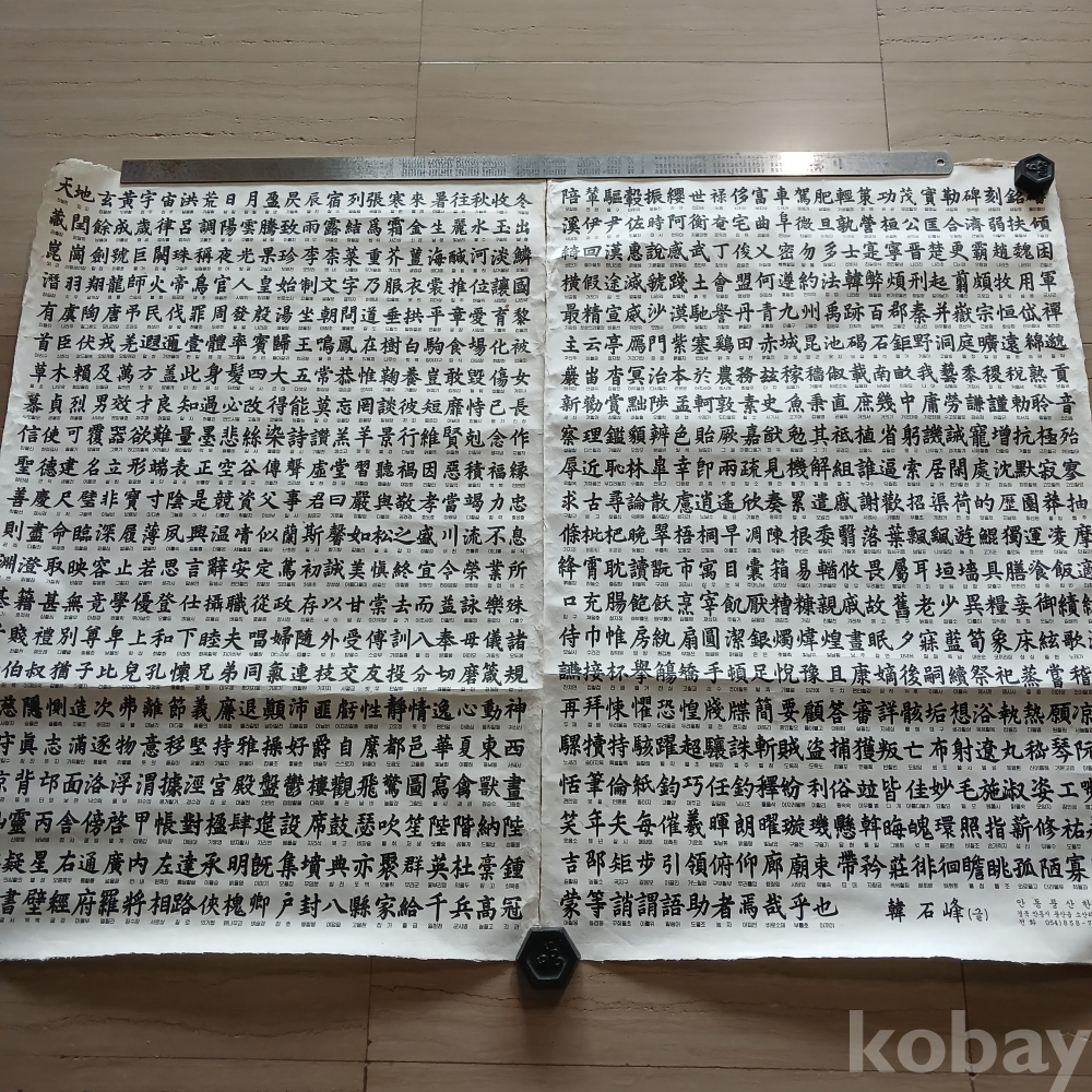전지 2장으로 구성된 한석봉체의 천자문입니다 안동 풍산 한지에서 제작한 벽지로서 학동의 공부용으로 제작한 오래된 근대사적 유물입니다
