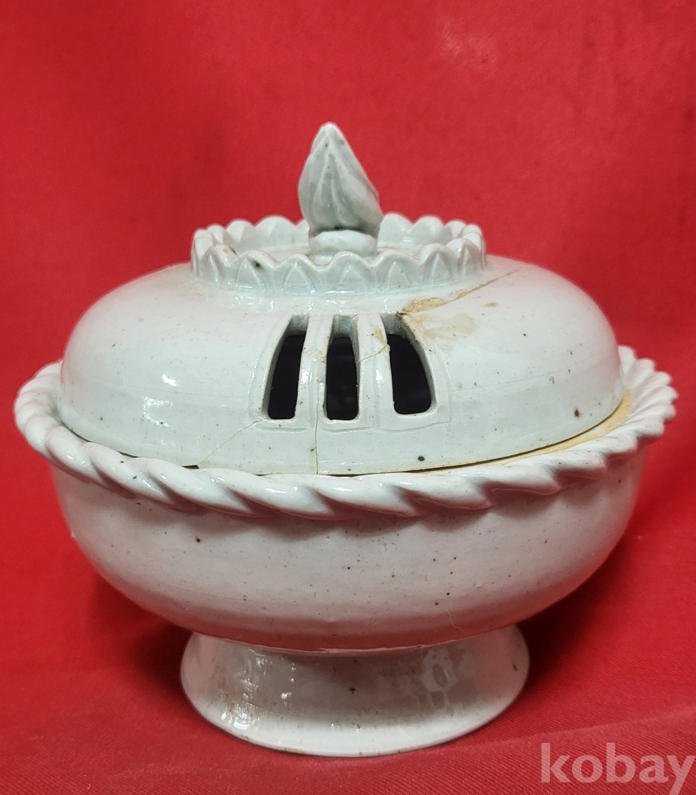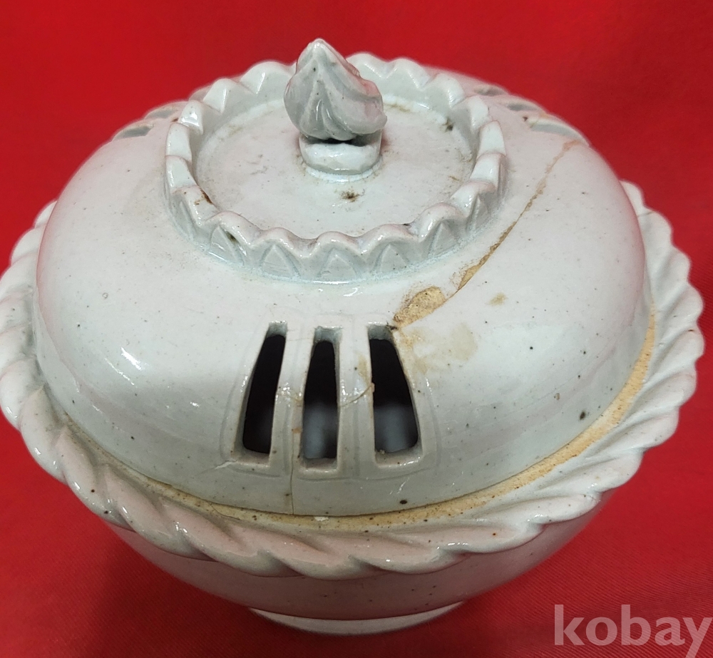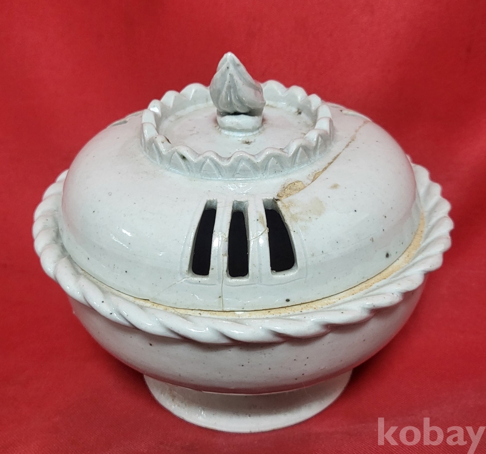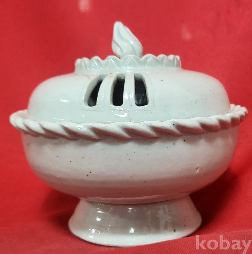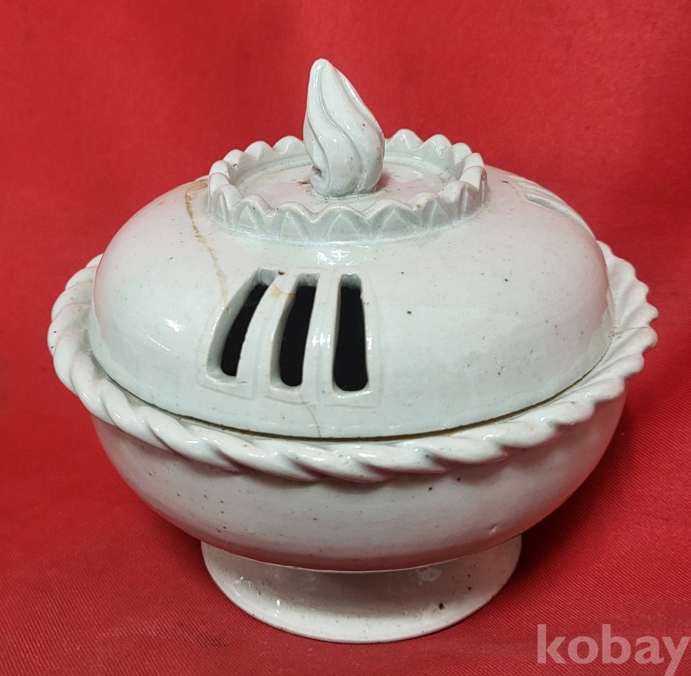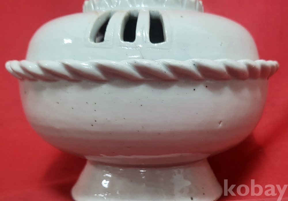 조선시대 연대 갖춘 백자 햇불 문양 투각향로(香爐)입니다,