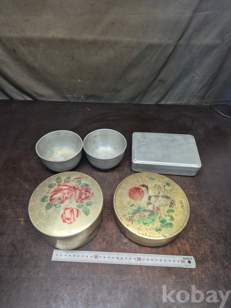 1970년대 알루미늄 2단 찬합 일단 찬합 알루미늄 밥그릇2점 알루미늄 도시락 1점 일괄 5점 일괄 21*15*5