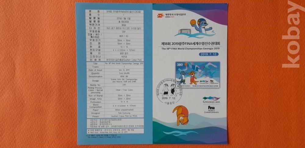 2019 제18회 광주 FINA 세계수영선수권대회(안내카드 포함) 16매 전지 입니다.