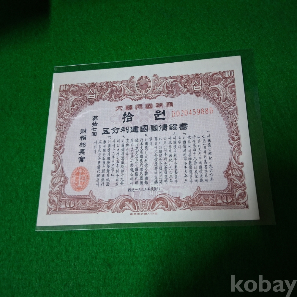대한민국 1963년 건국채권 17회 10원 미사용