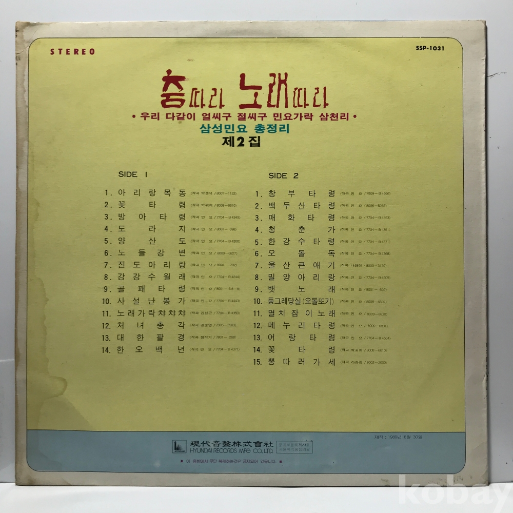 LP 21,950-106 춤따라 노래따라 - 아리랑목동/ 창부타령 80 현대 자켓 EX 알판 EX