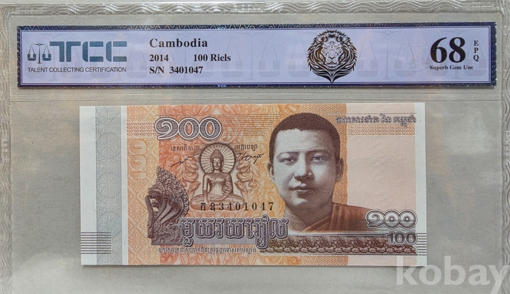 -2014년 캄보디아 100리엘 지폐 TCC68 고등급 입니다.