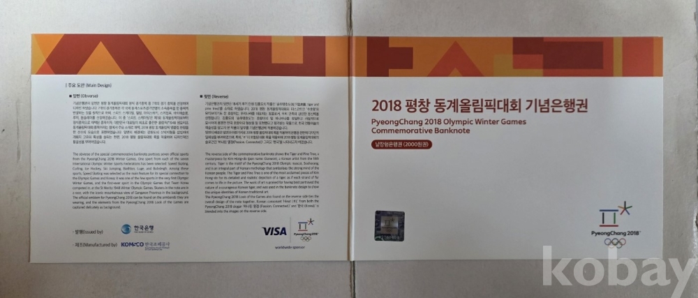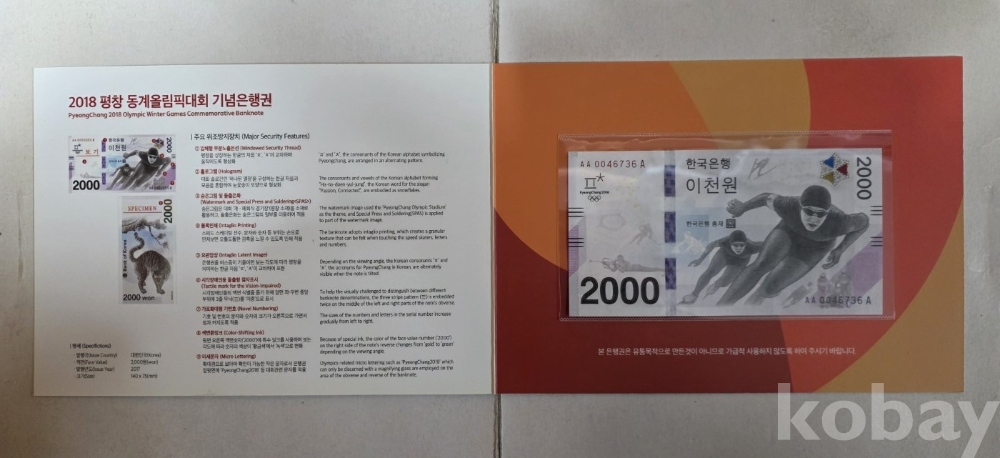 -대한민국 평창동계 올림픽기념 지폐첩 초판 AAA004포인트 입니다.