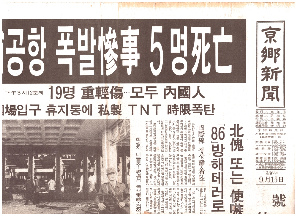 김포공항에서 발생한 시한폭탄 테러 사건을 전한