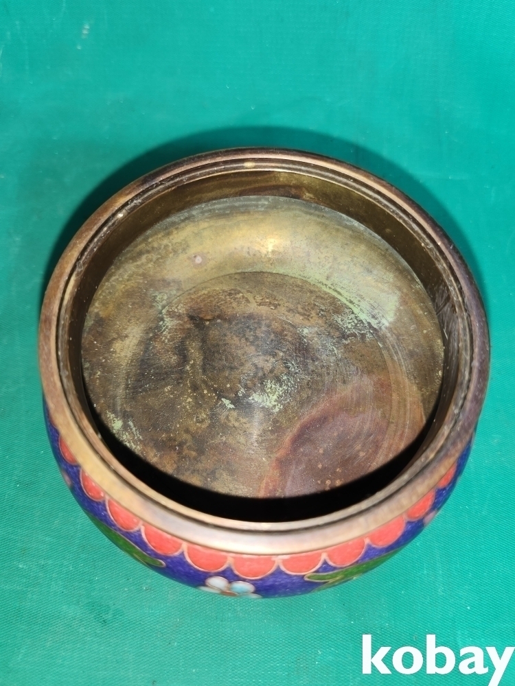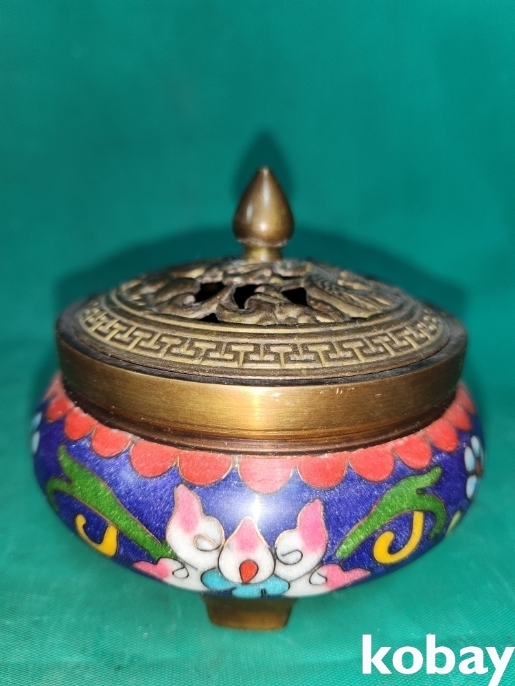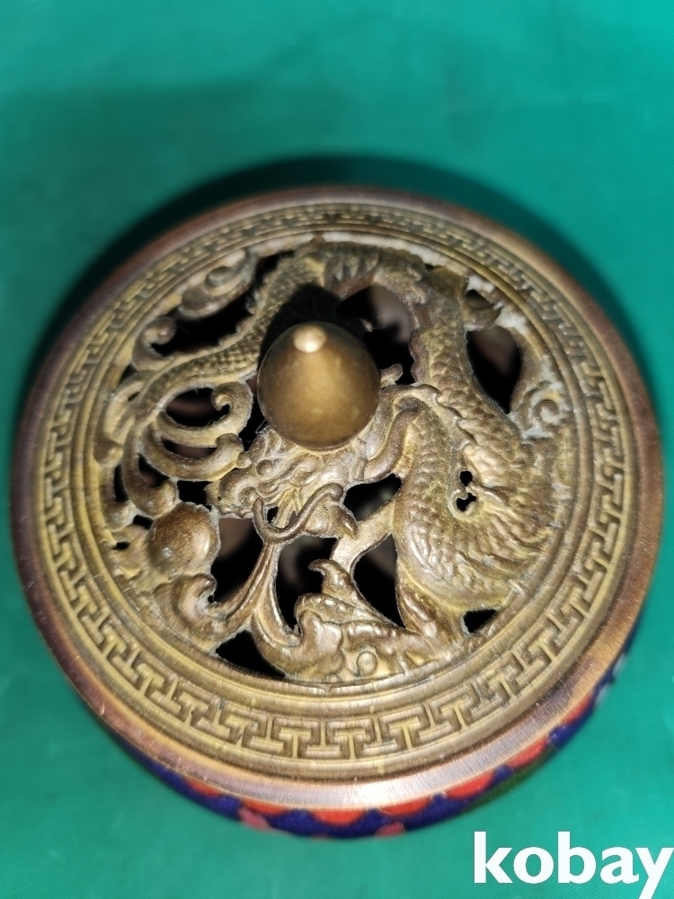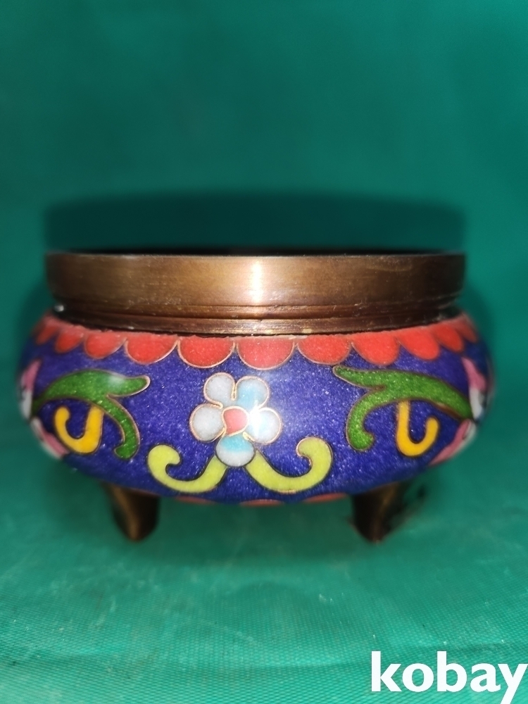 굽에 관지가 보이는 동태 범랑 꽃과 운용문 향로입니다,