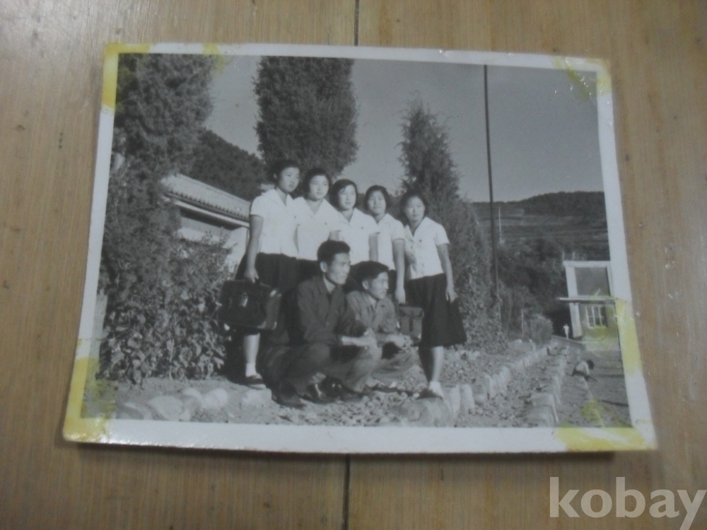 1261h)작은사진-60년대 교정에서 가방든 여학생들과 교사들 사진.