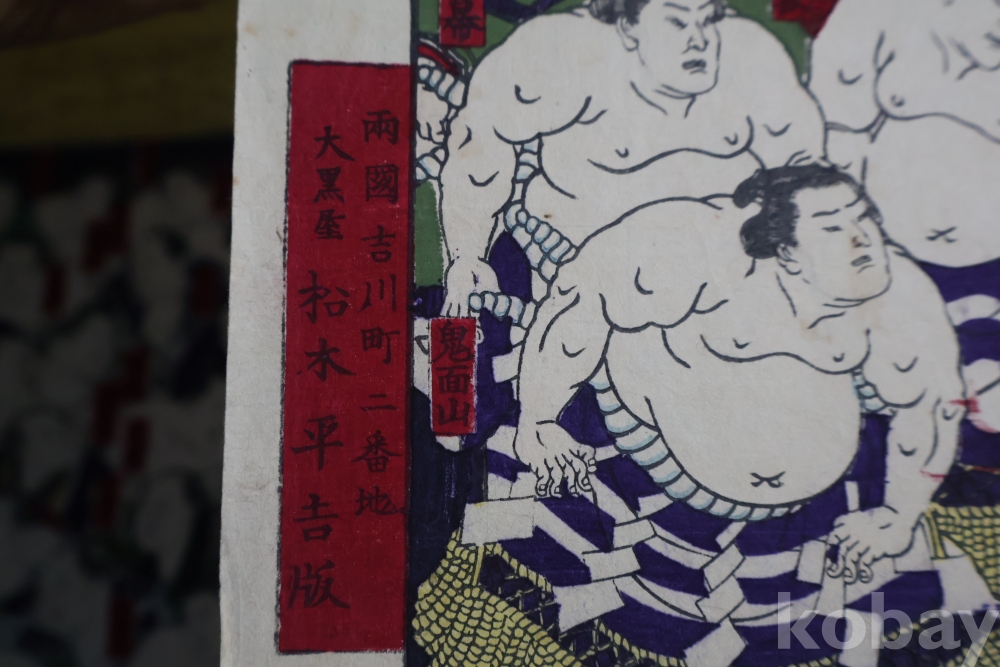 19세기 우키요에 목판화 스모 임니다 화가의 낙관을 가진 상태 조은 당대의 명작 임니다ㅣ 일본 스모 선수의 모습을 가진 고미술 목판화 임니다 Japanese woodblockprint from Utagawa Kuniaki II