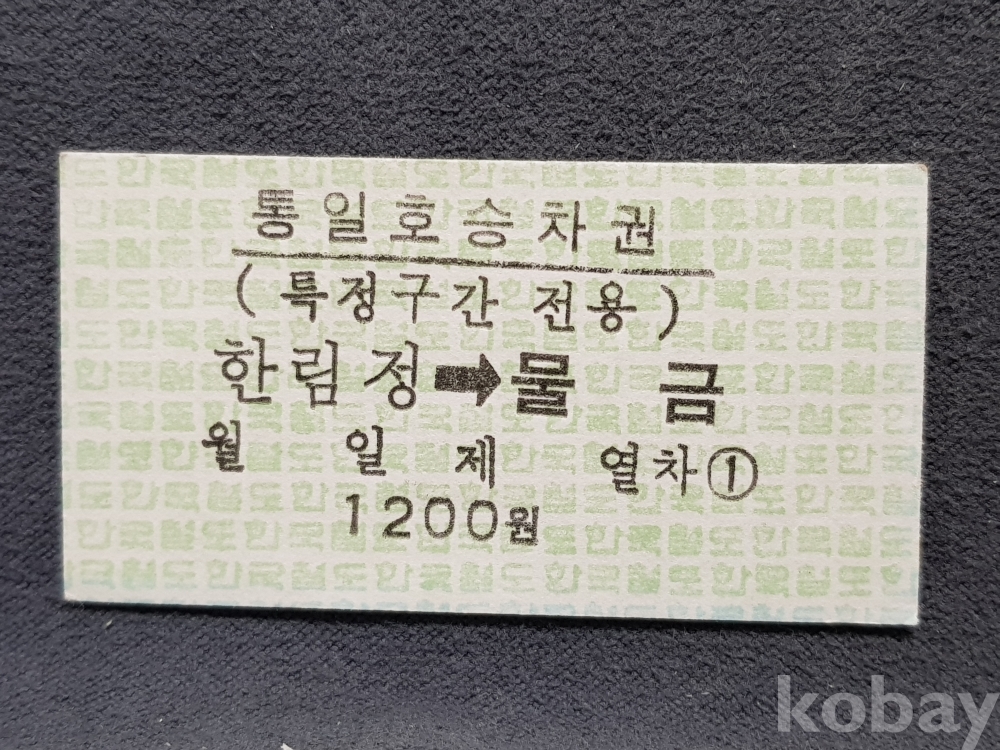- 미사용 통일호 승차권(특정구간전용) " 한림정 ▶ 물금 " 1200원