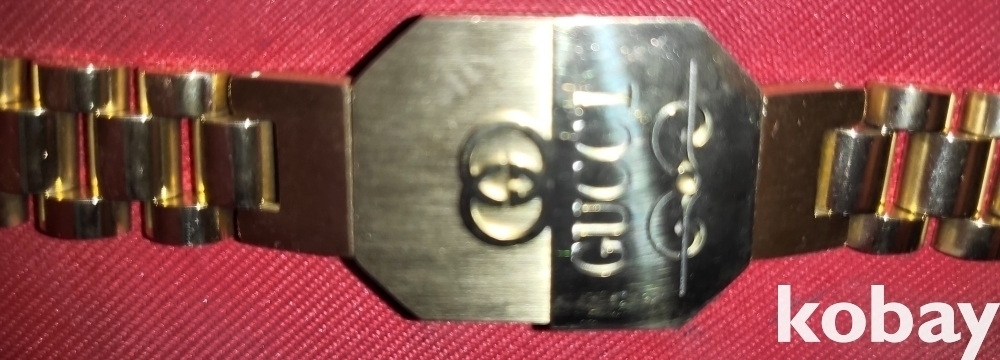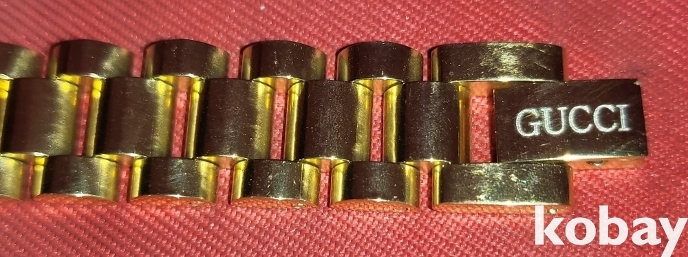 구찌 마크가 새겨진 항금색 남,녀 공용 미사용 팔찌입니다,