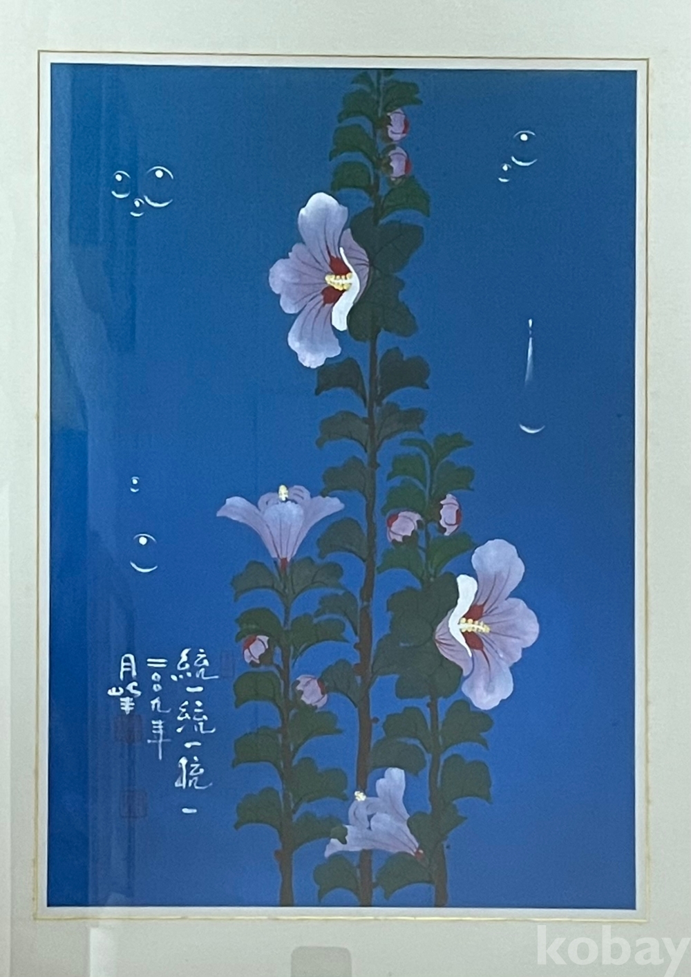 깊고 단아한 청색 바탕 위에 피어난 무궁화의 기개와 품격을 섬세하게 담아낸 작품입니다.